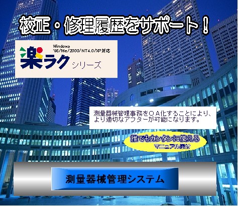 ソフト名 :測量器械管理システム Ver1.30新発売 平成19年4月 環 境: エクセル2000以上で起動 価 格:¥50,000(税込) 測量器械事務をOA化することにより、
